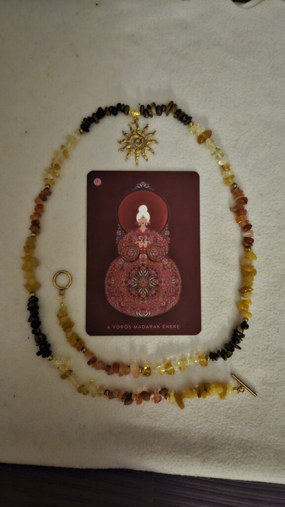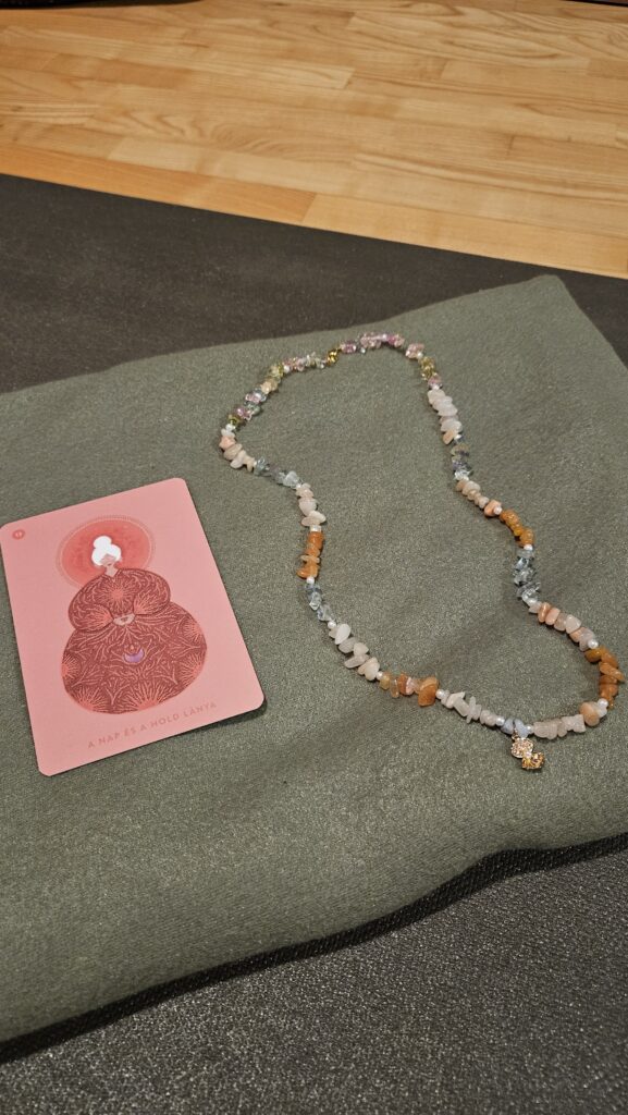 A második napon tartottam az első női workshopomat a lányoknak. Vizualizációval, kreatív energiával, alkotással dolgoztunk. Egy olyan folyamat volt ez, ahol megengedhettük magunknak az alkotói kiteljesedést, majd az alkotást szó szerint továbbvihettük magunkkal. Ezek az ékszerek a női test területeihez kapcsolódnak, és a kreatív önkifejezés eszközei. Az alkotások feltöltődtek a jóga, a hangtálak, a női kör, az oltár energiájával. Ezek nem „csak” ékszerek lettek, hanem emlékeztetők, lenyomatok.