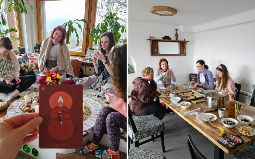 A női körök megtartó ereje számomra mindig mély élmény. Ezekben a kis csoportos elvonulásokban ez különösen erősen jelen van. Három nap alatt csodálatos beszélgetések alakulnak ki. A nők belerakják magukat, a történeteiket, az életük egy szeletét. Ez megtisztelő. És közben megszületik az a női minőség, aminek valójában jelen kellene lennie az életünkben: az egymásra figyelés, az együttérzés, a támogatás.