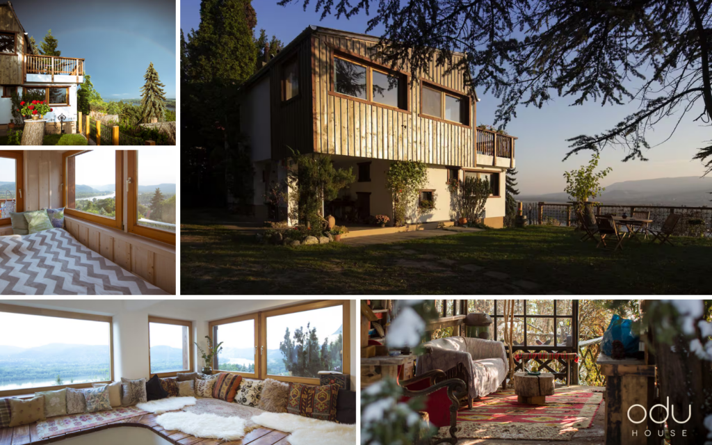 Az ODU House fenn van a hegyen, a Dunakanyarra néz. Ahogy megérkezel, az az érzésed, hogy itt tényleg ki tudsz lépni a hétköznapok zajából. A természet közelsége mindenhol jelen van: az erdő, a hegyek, a Duna látványa. Bent a házban minden gyönyörűen, ízléssel van kialakítva. Van egy nagy közösségi tér, ahol ha kiülsz az épített kanapéra, egyszerre látod a Dunát, az erdőt, a hegyeket. Olyan érzés, mintha a tér is azt mondaná: itt meg lehet állni, gyere pihenni.